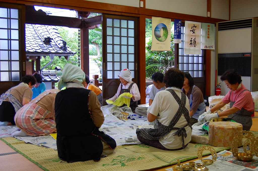 ▲仏婦会員の皆さんによる仏具磨き