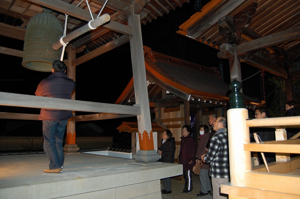 平成21年12月31日午後11時55分より、除夜会を行い、大勢の参詣者と共に1年に感謝を込めて、除夜の鐘を突きました。