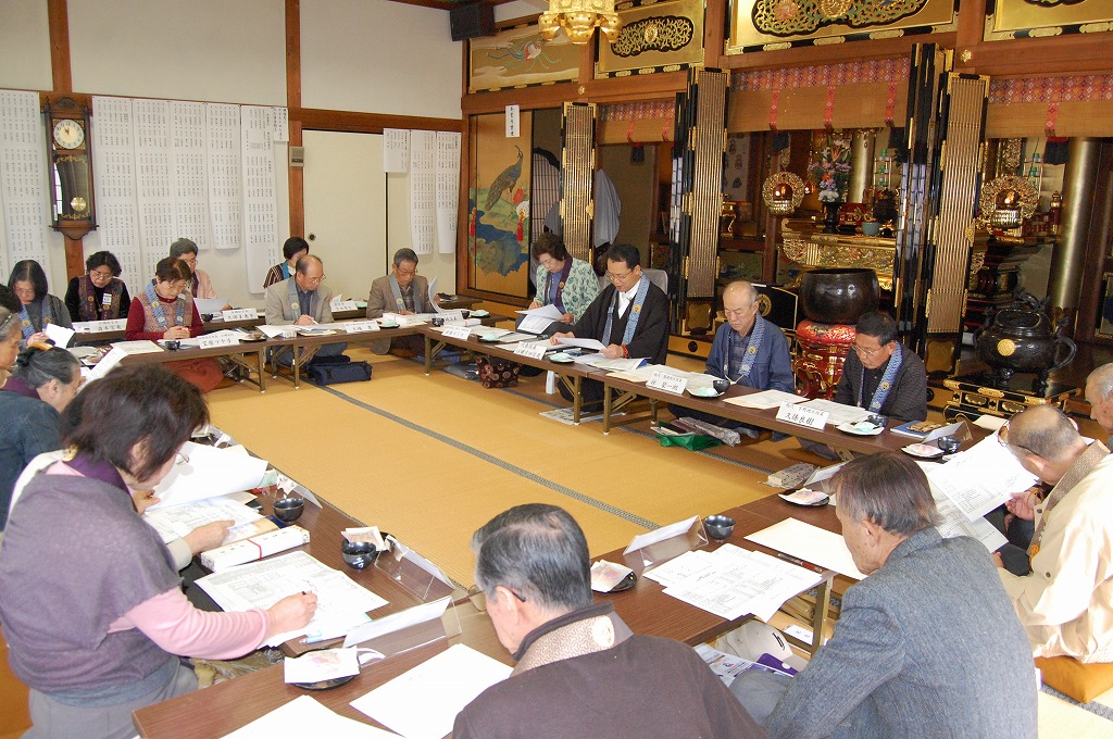 定例役員会が開催され、平成21年度門信徒会費決算書承認の件、平成22年度門信徒会費予算書(案)承認の件、新役員承認の件、親鸞聖人750回大遠忌記念事業中間決算の件、同法要団参の件が協議されました。
