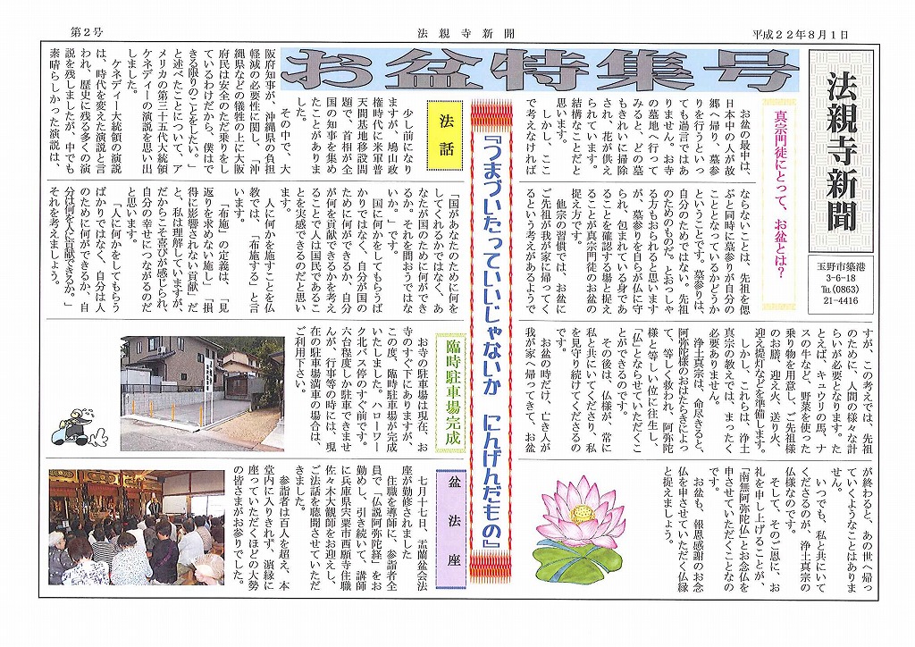 法親寺新聞 『お盆特集号』