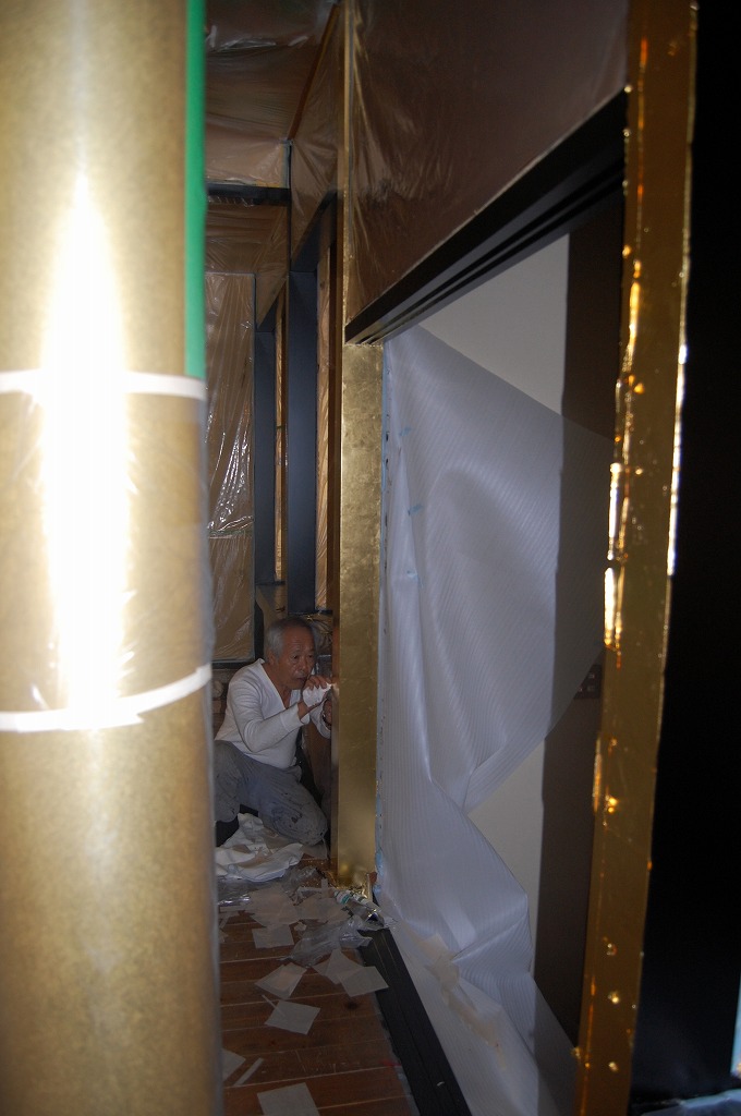 ▲内陣床の擦り漆の工程