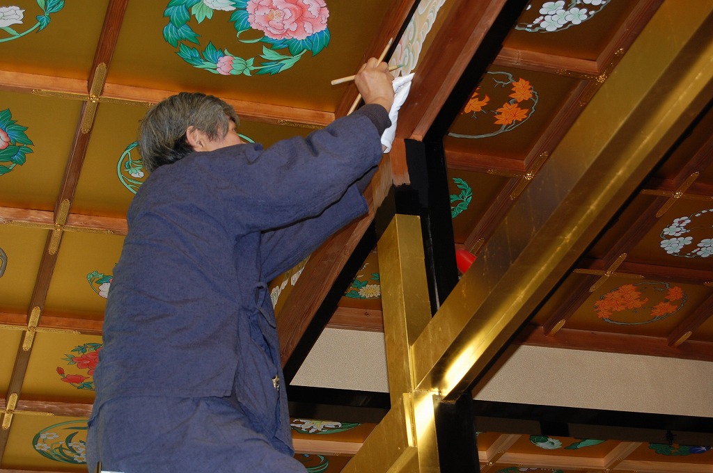 ▲安川先生の彩色の様子