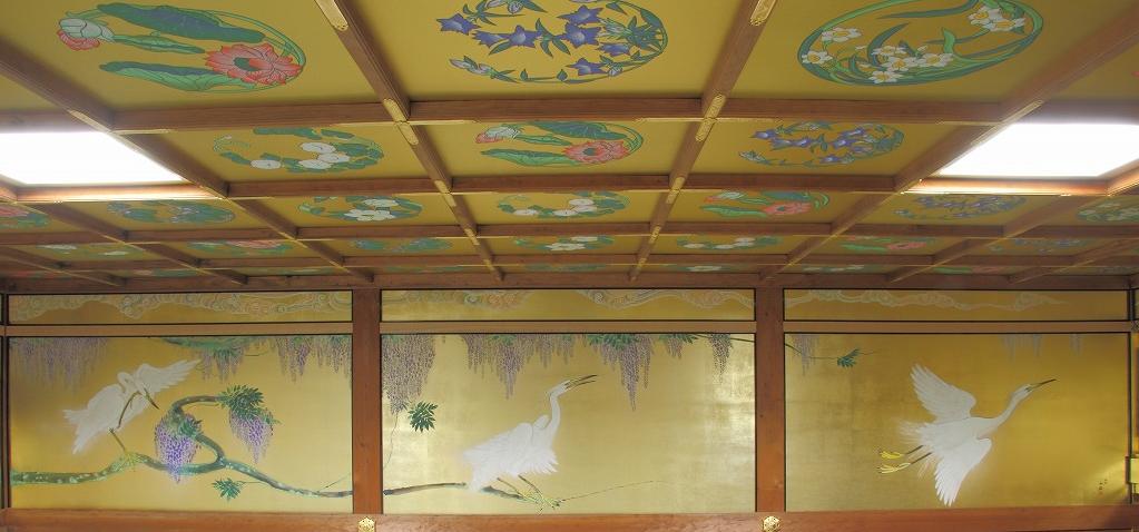 内陣漆塗り、箔押し、彩色、壁画 の施工工事完工