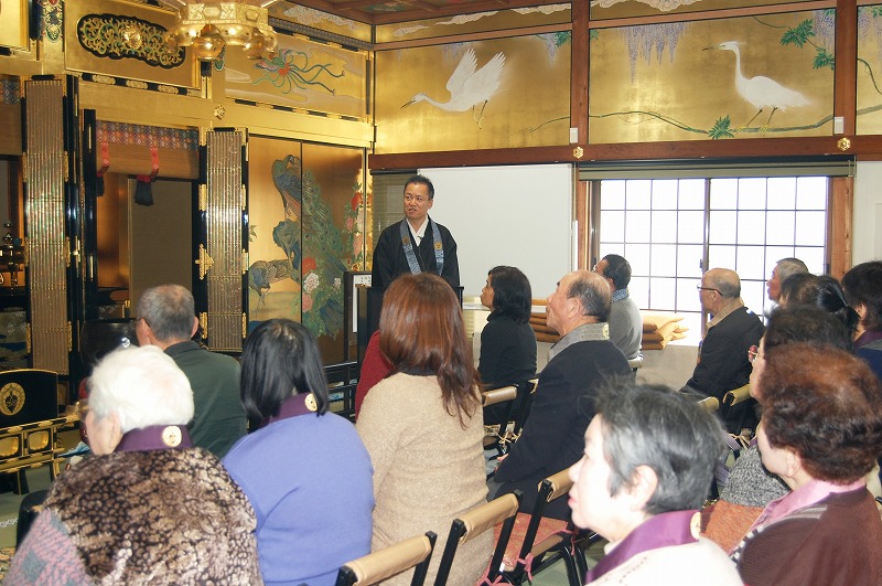 浄土真宗を開き、私たちにその教えをお示しくださった宗祖のご苦労を偲び、皆で正信偈をお勤めし、ご法話を聴聞していただきました。
