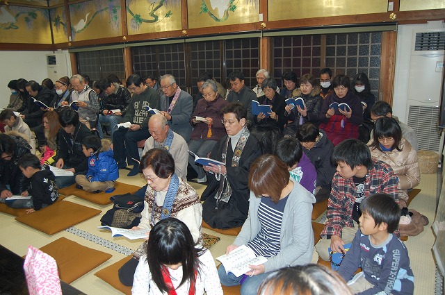 平成24年12月31日午後11時55分より、除夜会を行い、大勢の参詣者と共に1年に感謝を込めて、除夜の鐘を突きました。