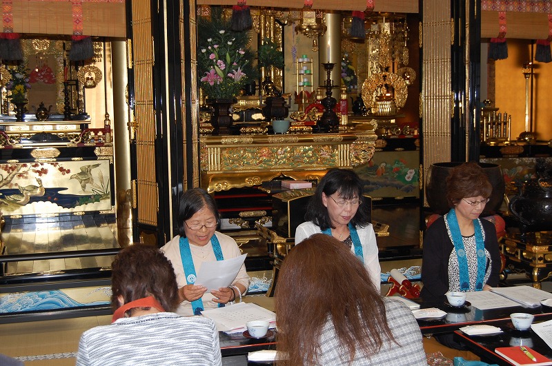 今年度より3年任期で法親寺から仏婦会員の篠原久代さんが連盟会長に、西谷愛子さんが会計に選出されました。
