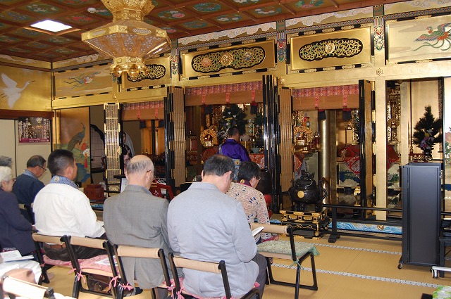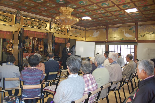 参詣者全員で仏説阿弥陀経をお勤めし、「迷信・念仏者の生き方」と題して、住職による法話をご聴聞いただきました。