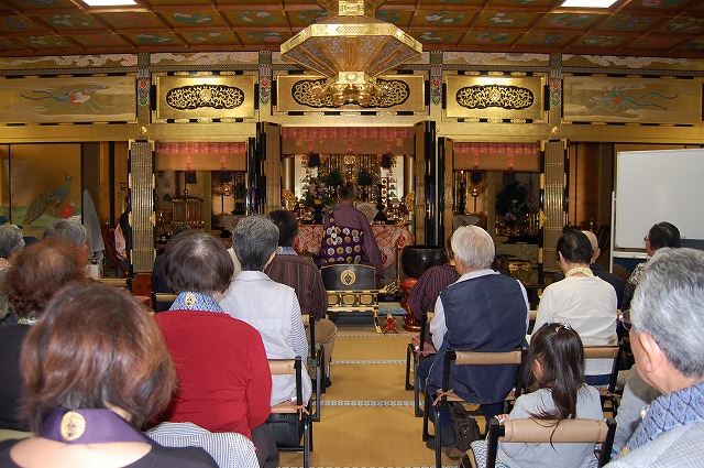 参詣者全員で仏説阿弥陀経をお勤めし、住職による法話をご聴聞いただきました。