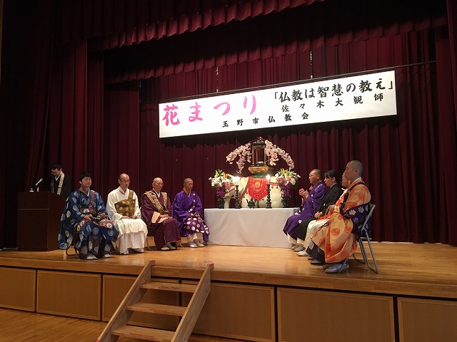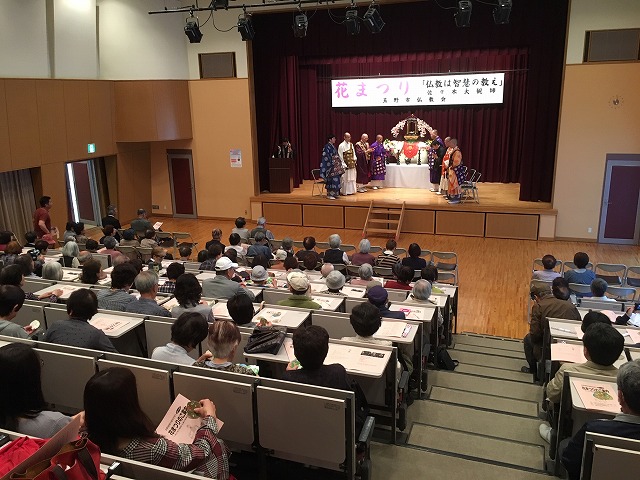 玉野市仏教会主催のお釈迦様の誕生を祝う「花まつり 佐々木大観 師『仏教は智慧の教え』講演会」が開催され、各宗派による仏讃、甘茶の行事などがあり、多くの方々にご参加いただきました。
