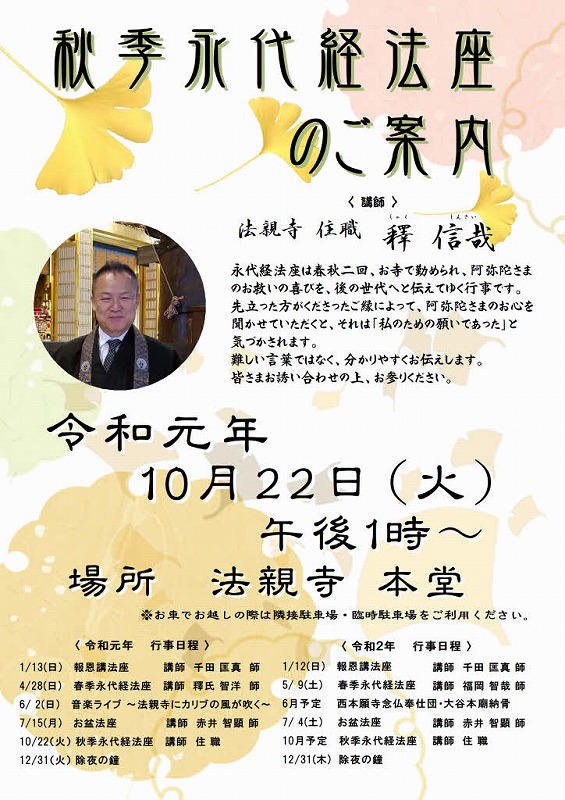 秋季永代経法座のご案内