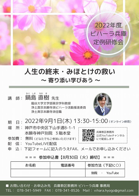 2022ビハーラ兵庫定例研修会『人生の終末・みほとけの救い〜寄り添い学びあう〜』YouTube LIVE配信に仏教婦人会役員の皆さまとお寺の本堂で参加させていただきました。