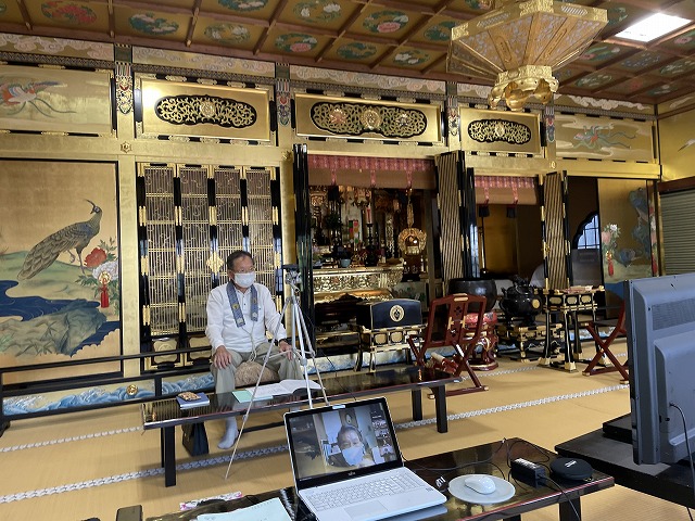 2022年度兵庫教区門徒総代会幹部研修会(39組762ヶ寺)が本願寺神戸別院で開催され、法親寺からは総代を代表して久保総代がお寺の本堂からオンラインで出席させていただきました。