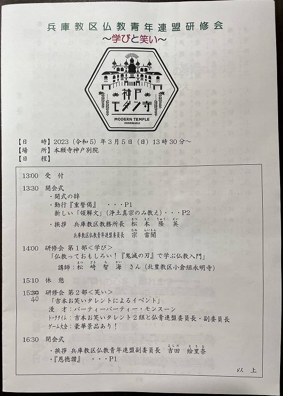 「兵庫教区仏教青年連盟研修会~学びと笑い~」2023.3.5