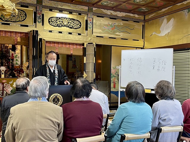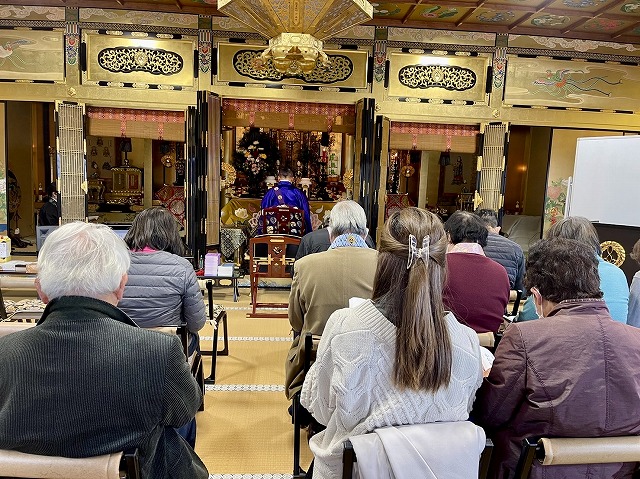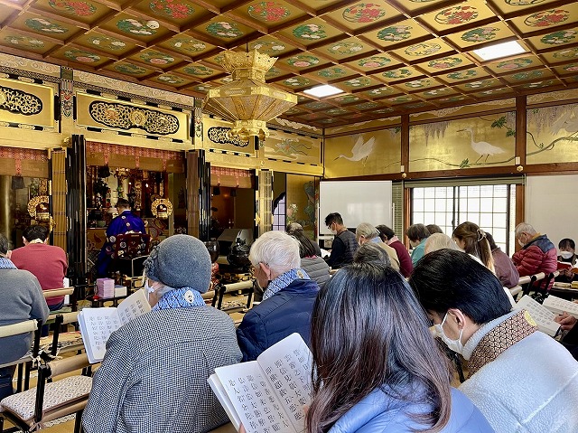親鸞聖人が阿弥陀如来のお念仏の教えにあわれた喜びを漢文で偈(うた)にされた正信偈を皆でお勤めし、法話をご聴聞いただきました。