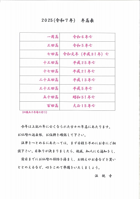 2025(令和7年)年忌表