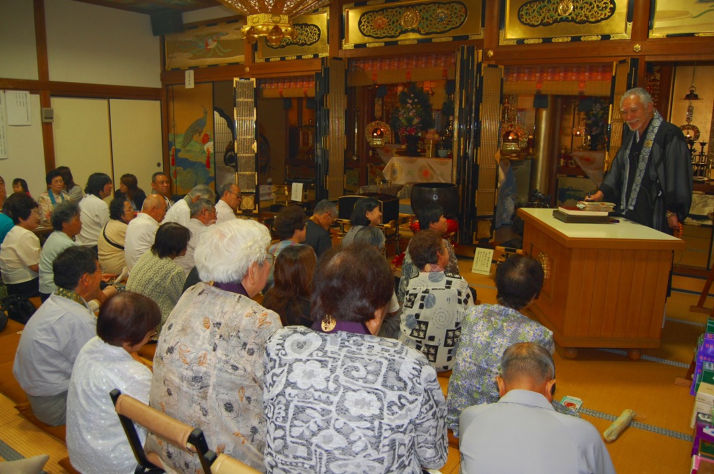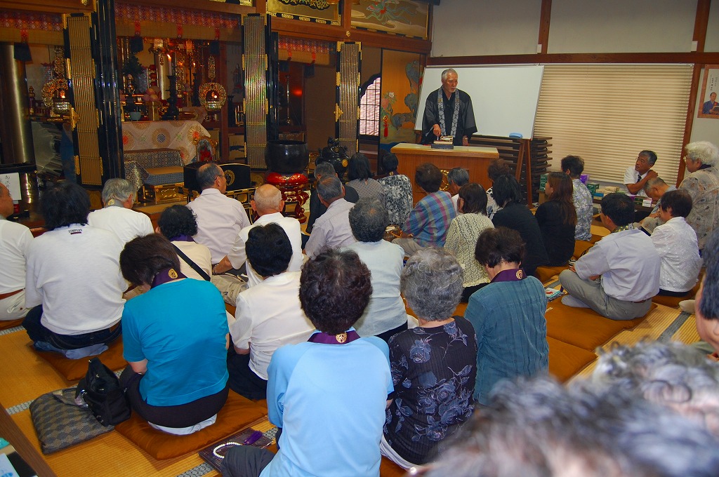 住職を導師に、参詣者全員で「阿弥陀経」をお勤めし、引き続いて、講師に兵庫県宍粟市西願寺住職佐々木大觀師をお迎えし、ご法話を聴聞させていただきました。