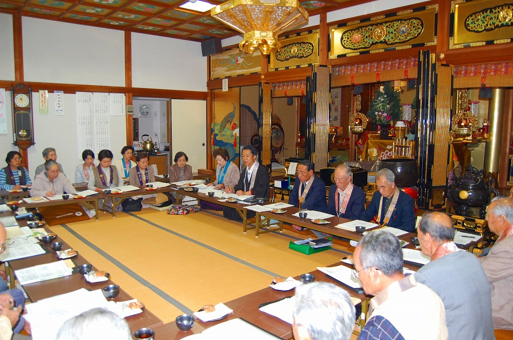 また、、岡山南組連続研修会、春季永代経法座、盆法座、お磨き(大掃除)、婦人の集い、門信徒集いの予定と参加依頼、仏教婦人会及び仏教壮年会から各種行事についての報告と予定行事への参加依頼が行われました。