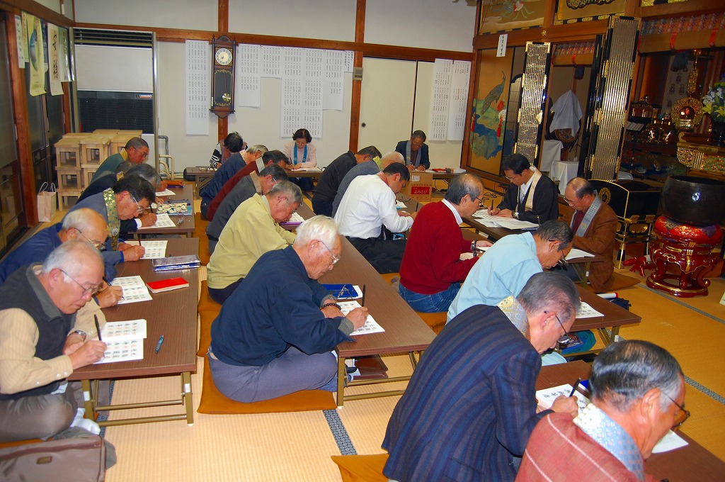 11月に入り、急に冷え込み、冬到来となったにもかかわらず、大勢の皆さまにご参加いただきました。内容は、法話、教義、作法、写経と盛りたくさんですが、皆一同に真剣に学んでいただきました。