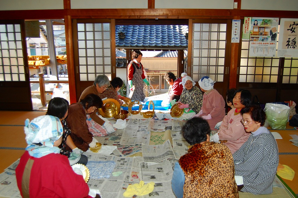 手も動きますが、口も動いて、楽しく仏具磨き