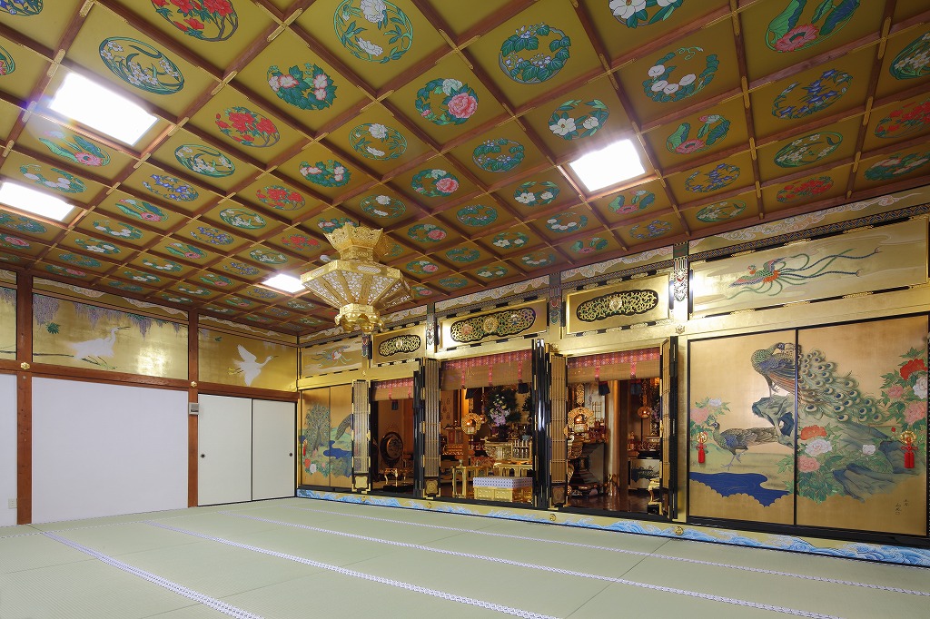 2010年が終わりに近づく12月の中旬、当山内陣外陣の漆塗り、箔押し、彩色、壁画 の施工工事が完工いたしました。