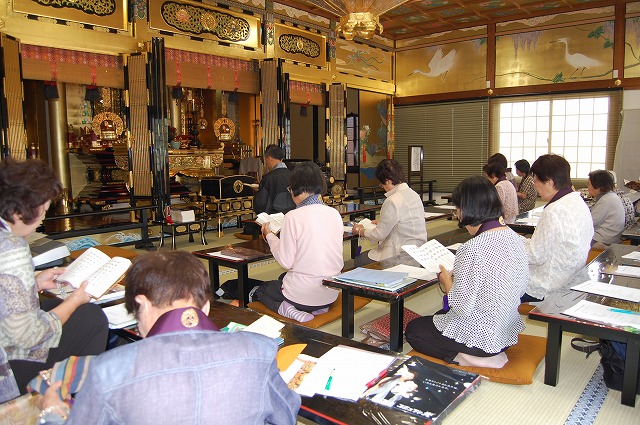 協議の後は、住職による「浄土真宗の葬儀について」の講義と坊守による「音楽礼拝」の歌唱指導が行われました。