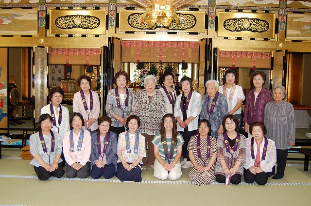 本堂において、平成23年度仏教婦人会の総会が開催されました。任期満了に伴い役員改選が行われ、会長は引き続き市原会長が再選され、副会長3名、会計1名が新たに選出され、住職からの使命を受けました。