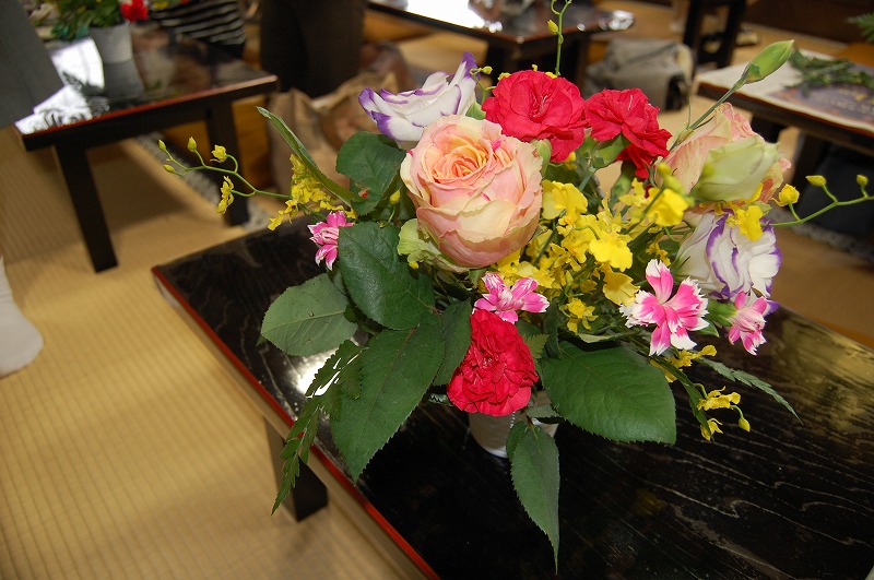 市原リミコ会長の挨拶、住職挨拶に引き続き、平成26年度決算の承認、兵庫教区岡山南組仏教婦人会連盟報告を篠原久代南組仏婦連盟会長(平成27年度より三年任期)より頂き、続いて、DVD『親鸞の見た風景』の鑑賞、坊守指導による『アレンジメントフラワー』を行いました。