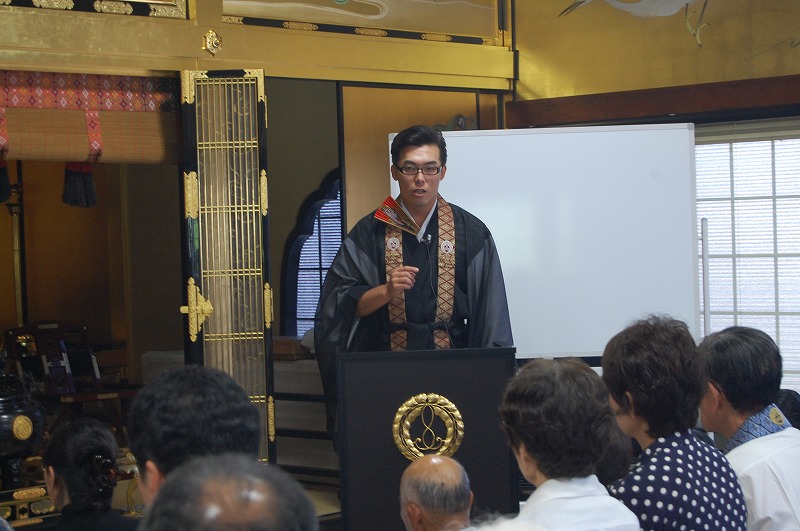 引き続いて、講師に山口県都濃西組真行寺住職佐々木大乗師(兵庫県宍粟市西願寺住職佐々木大觀師のご子息)をお迎えし、ご法話を聴聞させていただきました。