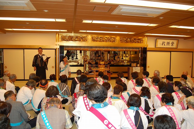 ▲ご門徒の篠原さんが団を代表してお寺の紹介をしました。