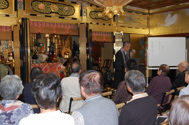 参詣者全員で仏説阿弥陀経をお勤めし、住職による法話をご聴聞いただきました。