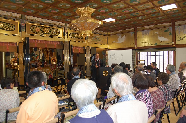 参詣者全員で仏説阿弥陀経をお勤めし、住職による法話をご聴聞いただきました。