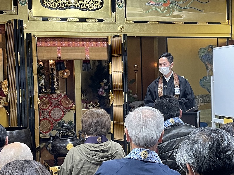 引き続いて、講師に兵庫県姫路市圓福寺で本願寺派布教使、伝道院布教使課程指導員、京都女子大学雅楽部講師の福岡智哉師をお迎えし、ご法話を聴聞させていただきました。