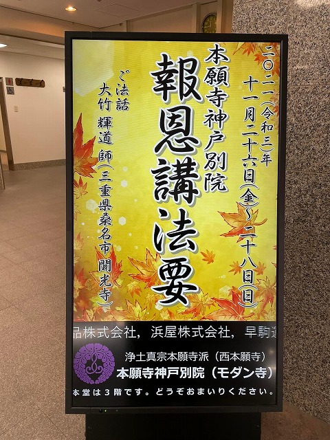 本願寺神戸別院報恩講法要(大逮夜法要)『宗祖讃仰作法』に結衆として出勤させていただきました。
