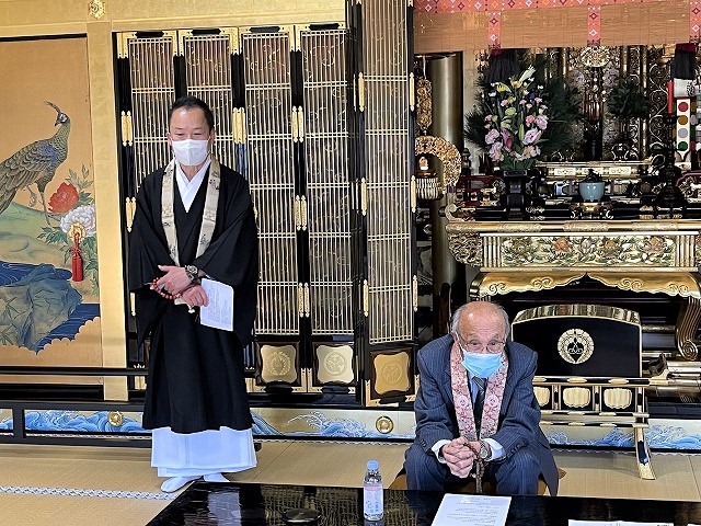 ご門徒の神名川さんにお寺にお越しいただき、本堂から築港小学校4年生と6年生の教室にZoomミーティングで、「95歳の語りべ」を配信させていただきました。また、後半に質問コーナーを設け、神名川さんと子どもたちとの対談を行いました。