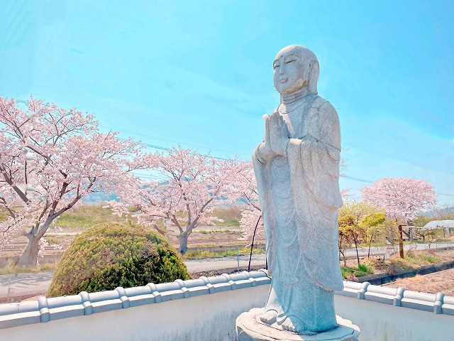 七区法親墓苑石仏と満開の桜