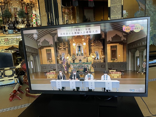 2022年度 兵庫教区 仏教婦人会連盟大会(教区大会)が『YouTubeライブ配信』で開催され、法親寺仏教婦人会役員の皆さまとお寺の本堂で参加させていただきました。