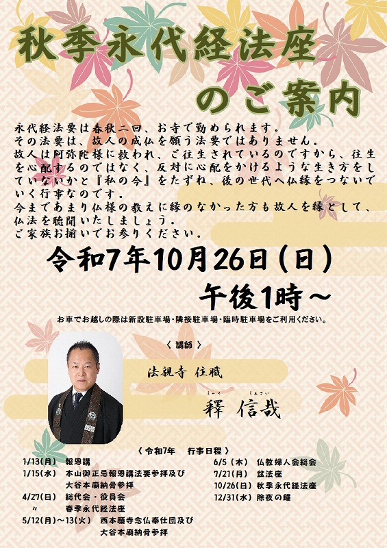 秋季永代経法座のご案内